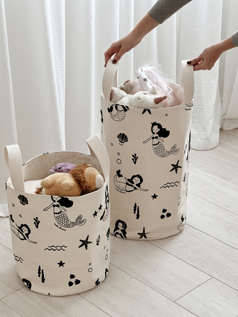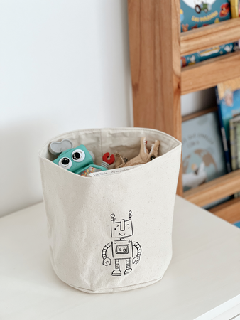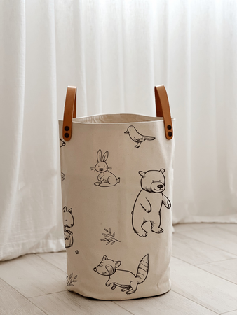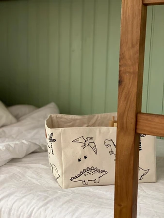 Contenedores con manijas de cuero desmontables. Estampas sostenibles y géneros súper resistentes.