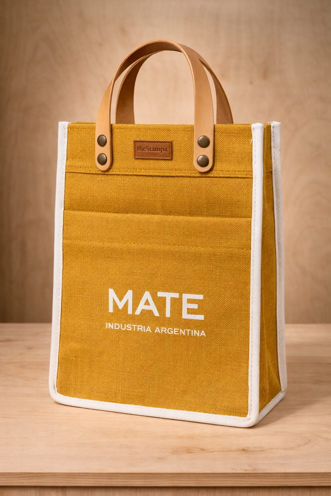 Matera confeccionada en Lona natural. Forreria en lienzo 100% algodon. Divisor interno para Termo (entra el Stanley) y mate + yerba. Correa regulable de algodon resistente para el hombro. Manijas de Cuero Vaqueta con sistema de broches desmontables o fijos. Bolsillo frontal.