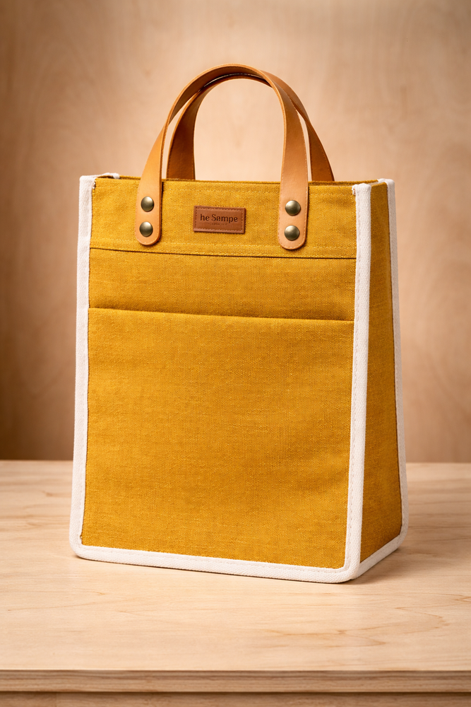 Matera confeccionada en Lona natural. Forreria en lienzo 100% algodon. Divisor interno para Termo (entra el Stanley) y mate + yerba. Correa regulable de algodon resistente para el hombro. Manijas de Cuero Vaqueta con sistema de broches desmontables o fijos. Bolsillo frontal.